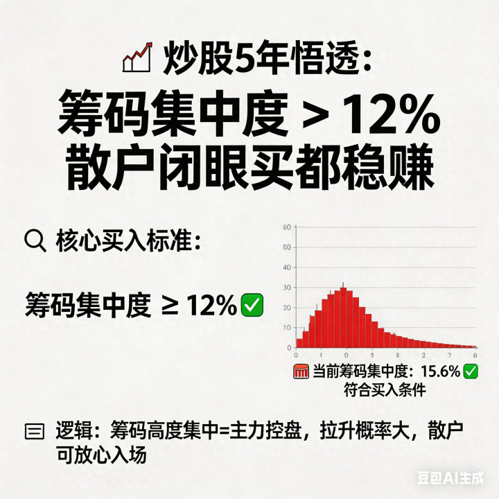 你平时选股会看筹码集中度吗?有没有试过用筹码信号抓到牛股?你觉得12%的黄金分界线好用吗?欢迎在评论区分享你的实战经历,一起交流稳赚技巧!