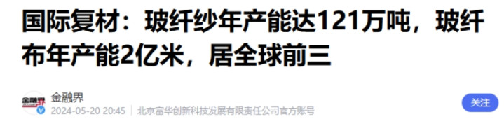 核心亮点:公司是产能规模全球第一的玻璃纤维生产企业。