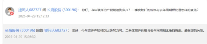 玻纤产能:公司在互动平台上表示,公司玻纤产能40万吨。将充分受益于电子布涨价带来业绩提升。